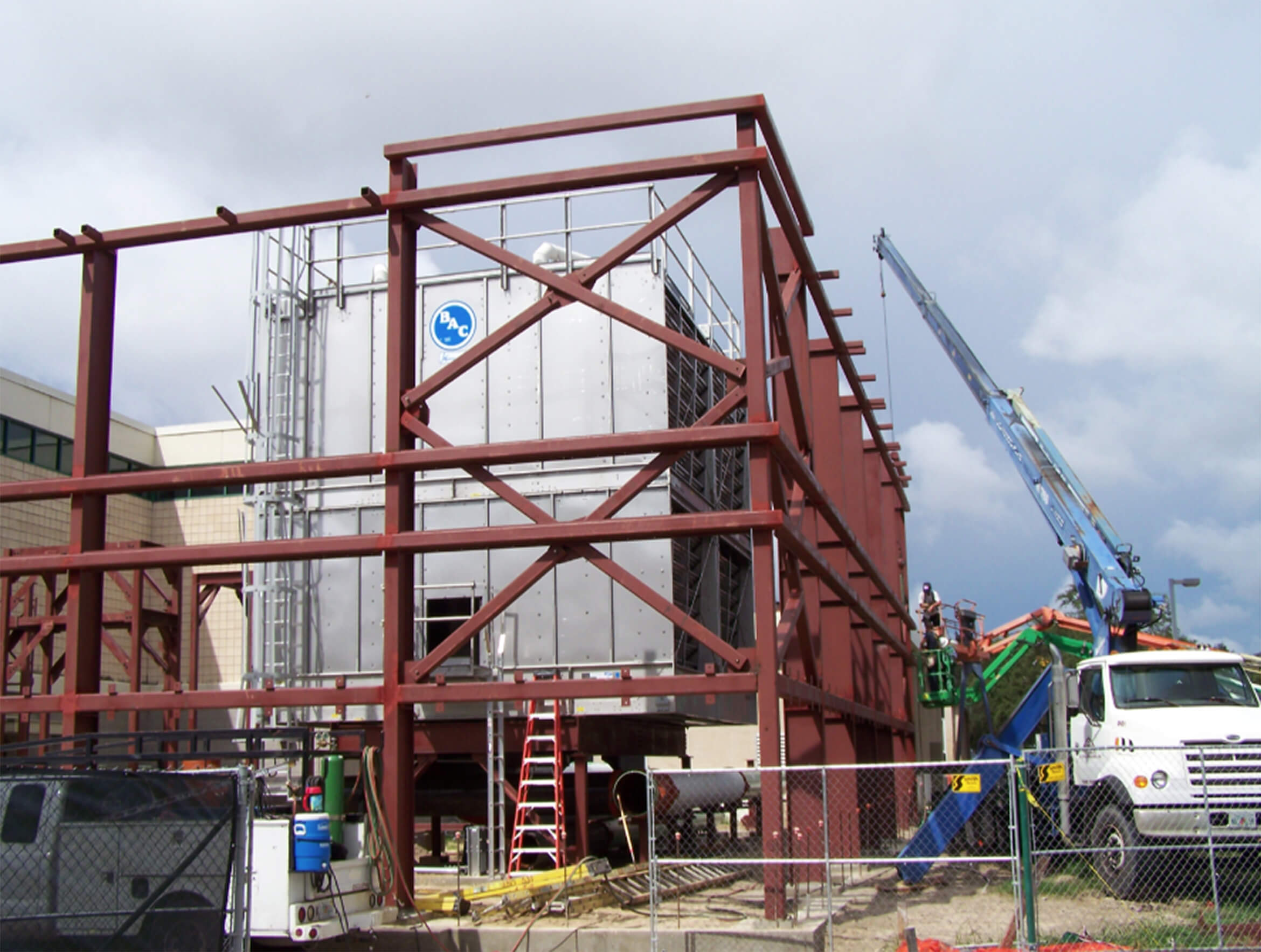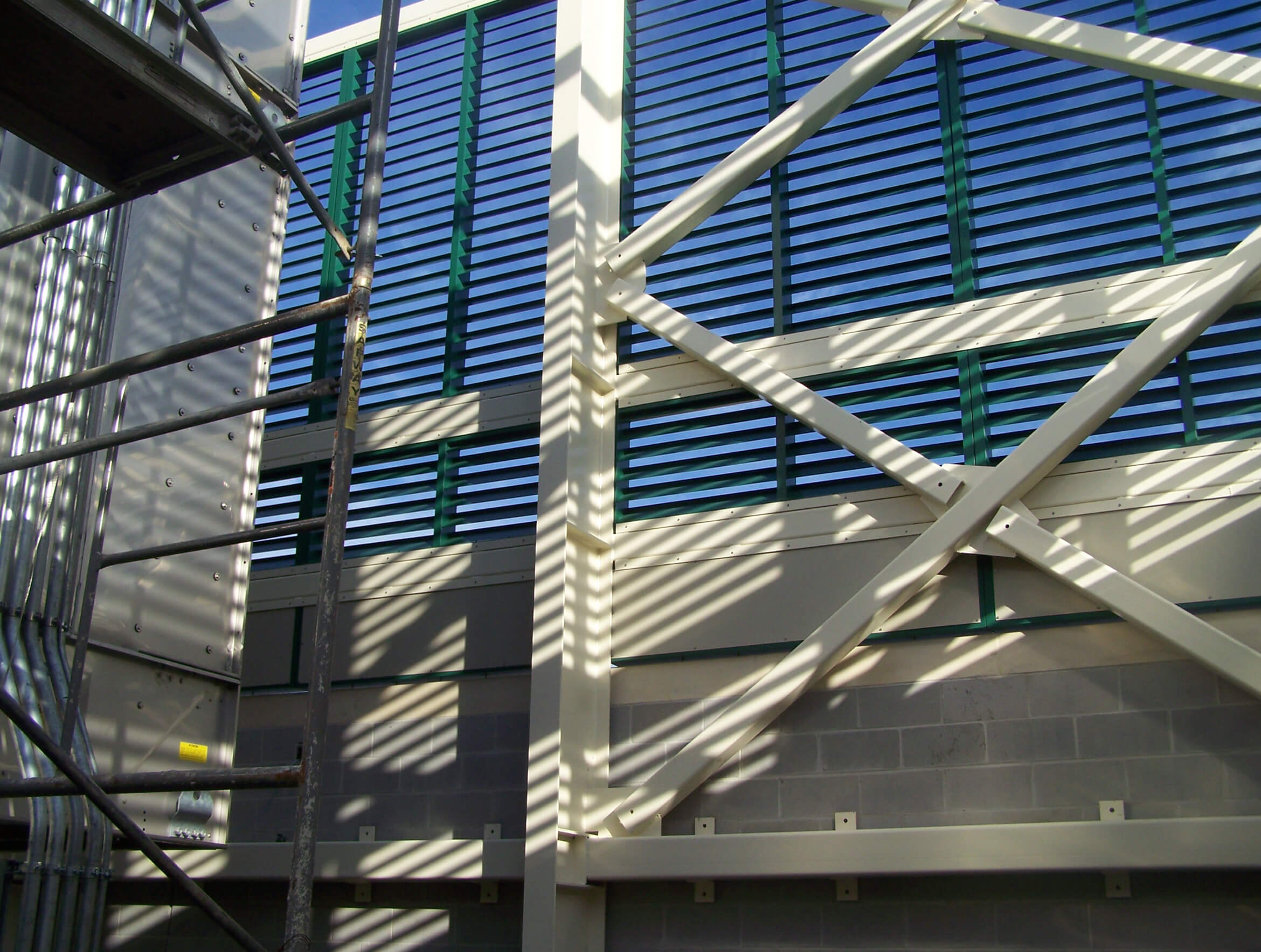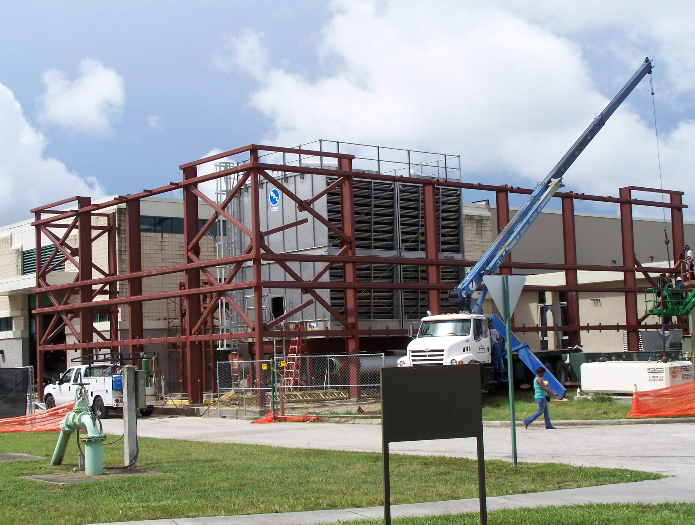 Biller Reinhart Engineering Group, Inc. performed the structural engineering design and prepared the construction documents (drawings and specifications) for a chiller plant expansion for the existing Northwest Chiller Plant on the University of South Florida campus. The expansion included new double cell cooling towers elevated on structural steel frames and a chiller and associated pumps and piping. Structural design was provided for the equipment foundations, steel support frames and pipe supports. The new area is enclosed with a 32-foot high structural steel framed louvered paneled screen wall supported by a deep foundation system.